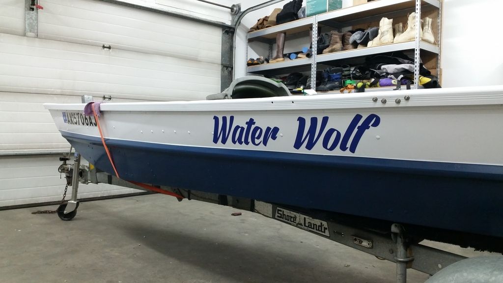 The water wolf got her title last night after she got splashed! Headed to the lake today after work, wont get the boat in until tomorrow morning, but I wanted to give it one good day to let the vinyl set up so I didnt have the title on her when I ran it first. Here's a shot of her all loaded up and ready to go for the weekend!!