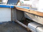 After looking at the the wood cabinets more, I've decided to redo the pattern, with some of my own little touches, but not the wood. By the looks of it, they used some pressure treated deck boards. I need to take a couple more pics that I just remembered. I want to show what pt wood will do to aluminum if in direct contact. The copper they use in it will have a corrosive effect on it unless there is a barrier in place. I will try to get those pics up when I am actually home in the daylight...I also discovered some rot in the support board they used to make the cabinets. It's not a surprise nor an added cost. I had planned on that to begin with. The transom definitely needs to be replaced as the shop vac was sucking parts of it away when I was cleaning it up....