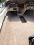 I just ordered samples of Marideck. It is the only brand I found that is wide enough to cover edge to edge of the floor to put the only seam at the floor-gunnel intersection. My Ray had a grey carpet. But, after really looking at the other colors in the boat I'm not sure why grey was used. The vinyl is a cream color (may have used to be white, lol) and the highlights are a beige and a sort of wine color that I just call red. The dash, etc is a wood grained plastic. So I'm not sure why grey came into the picture. I've also ordered my resin (West 105 with 206 hardener and 407 filler). According to West, I roll one coat then fill with a putty-like mixture any large holes or depressions, and then top with rolling 2 coats. We'll see...I've never worked with resin before. The floor is not in bad shape but it does have a couple areas with some cracks in the old resin or areas where it peeled up. I'm glad the rain finally left the area. Between that and work I've had to take a few days off.
