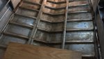 Are your knees hurting from kneeling on ribs and feet ache from standing on those ribs? I used a piece of plywood for future decking and laid it across the stringer to the chines just like decking. Actually, I cut the deck ply long before cleaning under the deck and moved the pieces in and out to give a work surface. My tripping over the stringer was also reduced.